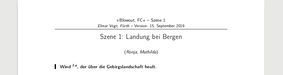 Um die Verwirrung in der Crew zu minimieren, wird darum jede neue Skriptversion mit dem Erstelldatum versehen, und ich habe mir ein bestimmtes Bezeichnungsschema für die Dateien angewöhnt, um nicht komplett den Überblick zu verlieren: